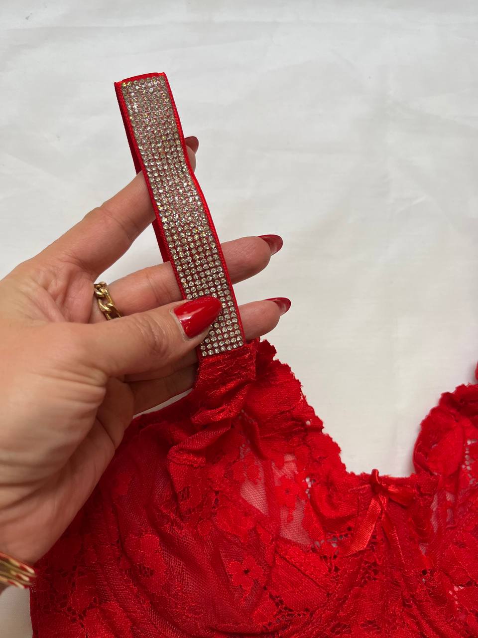 نگین های کار شده رو بندهای این سوتین ریزش نداره و تنخپر بسیار شیکی داره